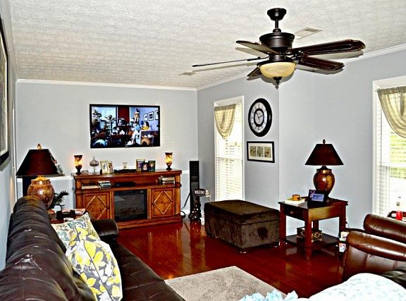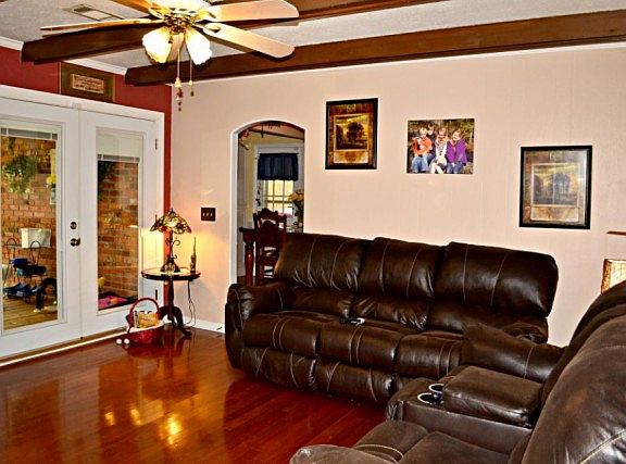Spacious light & bright kitchen with dining area features lots of storage, white cabinets, tile backsplash & SS appliances, neutral countertops, arched doorway. Greatroom w/french doors. Ceiling fans throughout the house. Hardwood floors in master bedroom, greatroom & hall. Master suite has bay window w/window seating. M/B features whirlpool tub & double vanities. This home is immaculate and shows well. Private fenced backyard and covered porch.