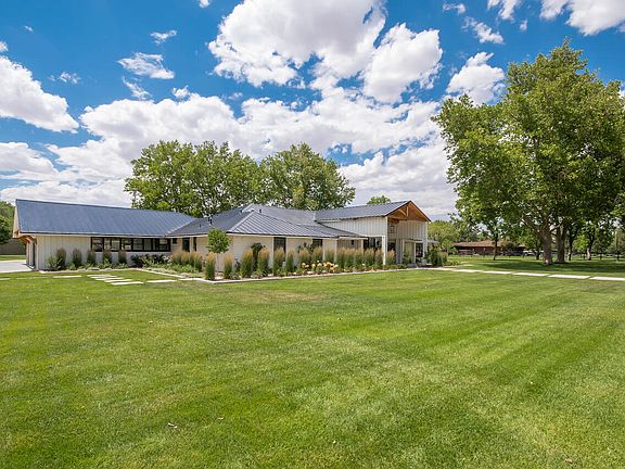 Phenomenal private North Valley oasis located on one of the most coveted streets in Los Ranchos. Entering this magnificent property will take your breath away. Single level. Elegantly and completely renovated in 2018. The entire home encompasses high end finishes, impeccably done with exquisite taste. Two very large living areas, options for formal and casual dining, tremendous windows with exclusive custom drapery. Kahrs white oak wood floors. Chef's kitchen with massive island, custom cabinetry, quartz counter tops and high end appliances. Each bedroom has its own bath and walk-in closet. Separate office with gorgeous builtins. Grounds are simply stunning. The property is gated and fully fenced. Mature trees, fruit and nut bearing, beautiful grass. Two stalls, a chicken coop and a (cont)
