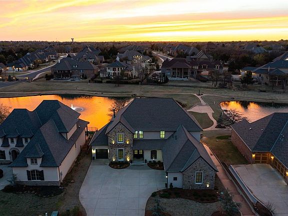 Absolutely stunning luxurious home located directly on the water, and in the Top-Rated Edmond School District! Superbly located in the gated Iron Horse Ranch subdivision. This beautiful 4-bedroom 3.5-bath home boasts over 3500 sf. As you enter the home you will fall in love with the open floorplan, magnificently tall 20-ft ceilings, floor to ceiling windows with stunning natural lighting and splendid views of the neighborhood ponds, and an elegant brick fireplace with a gorgeous custom-built mantle. The kitchen was meticulously designed with beautiful white cabinetry, an extra-large granite island, matching backsplash, wine bar, and a butler’s pantry. The oversized primary bedroom comes with a spa-like ensuite equipped with dual vanity sinks, large tiled shower, jetted tub, and a spacious walk-in closet with built-ins. Enjoy walk-out access to the covered patio for one-of-a-kind sunsets. The upstairs features a secondary living space, 3 additional bedrooms, and 2 full baths. STUNNING!