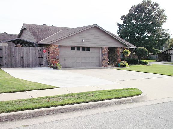 Recently remodeled, New Hardiebacker cement siding. New tile throughout house. Master and guest bedroom #2, have carpet. 3rd bedroom has tile floor. New interior/exterior doors. Lennox 90% efficient heat and air 8 yrs old serviced yearly. New water heater 1 yr old. Hand textured walls and ceilings. Oak crown molding through out house. New kitchen with granite tops. New KitchenAid gas range/microwave/dishwasher, new garage door opener, newly refaced stacked stone fireplace, Newly poured concrete drive with carport for boat etc on east side of house. New light fixtures/can lights. New bathroom fixtures tub/stools. New fence with galvanized post. Quite corner lot on culdesac, Call for appointment @ 918-three-three-one-5910