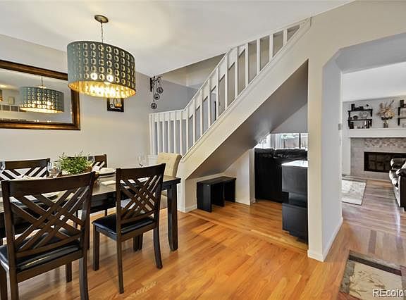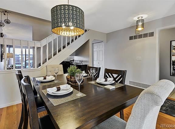 Enjoy spacious townhome living in this clean & bright unit! Enter the large dining room area with updated light fixtures & modern ½ bath, making entertaining in this great space easy! Kitchen has ALL updated stainless-steel appliances, recessed lighting, extra built in storage & pantry! Easy access laundry room. Hardwood floors throughout the main level flow into the massive living room, with wood burning fireplace & natural light from the large glass doors that lead out to the private patio. On the second level, relish in newer carpet, double masters, perfect for guests, roommates or a small family. Each large bedroom has its very own full private bathroom, vaulted ceilings & newer windows. Come & go easily with the convenient 2 spaced reserved parking right outside the front door! Walking distance to sage brush park, Cherry Creek Schools, short drive to I-225, Arapahoe Marketplace & Southlands Mall. This is the perfect location you have been waiting for!