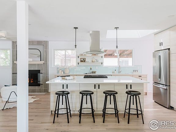 Completely remodeled, this ranch-style home showcases designer touches throughout. Nestled near Belleview Park on a large corner lot with custom fencing, a welcoming exterior crafts a charming first impression. An open-concept layout unfolds with abundant natural light from mostly new windows. The spacious living area extends into an elegant dining area for seamless entertaining. An open gourmet kitchen features a large island, new cabinetry and modern appliances. Situated off the kitchen, a tiled fireplace warms a cozy seating area. One of three main-level bedrooms, the primary suite boasts an updated bath with a vast shower and heated floors. Downstairs, the finished lower level hosts a large rec room plus two bedrooms, a 3/4 bath, laundry and storage. Enjoy outdoor relaxation in a private backyard with a covered patio. Upgrades include new electrical wiring and new plumbing. This home affords easy access to the Foothills and mountains, Pirates Cove Water Park and shopping and dining.