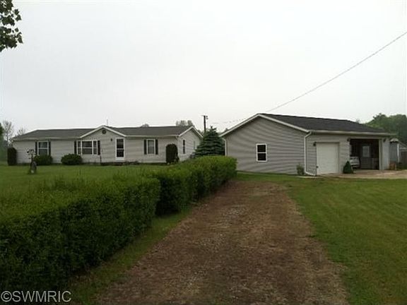 Greenville School District. Nicely maintained 1992 Doublewide with a full walkout basement on 26.27 acres! This home sits back off the road for maximum privacy with a shared driveway and offers a 3 bedroom 2 1/2 bath, spacious living room, dining area and mastersuite with garden tub & separate shower with approximately 2,206 sq ft of living space. The sellers primary source of heat is a newer(5 yr)outdoor wood boiler which will save you on heating costs but also has propane. The basement is partially finished and being used as a family room/rec room and also offers a huge work shop. You'll enjoy the 24x36 garage to house your 3 car vehicle and a 28x40 Pole Barn with electricity, concrete floors and (2) 12x12 sliding doors in each side. Of the 26 acres, approximately 10 acres are tillable and the rest are woods for prime hunting, per seller. Enjoy the peacefulness and serenity off your back deck overlooking the property. Close to schools, shopping and many miles of bike trails near by.
