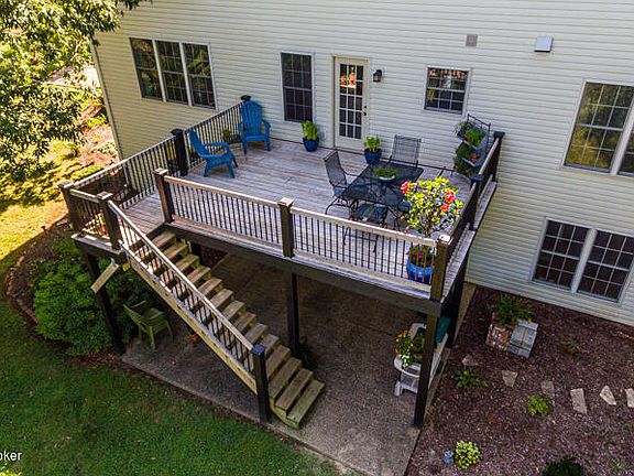 Read on, Serious Oldham County Buyers! 1 Owner Home in the highly sought after Stone Ridge Subdivision, just minutes from Oldham County Schools, expressways and shopping! 1.55 Acres of ultimate privacy on a cul de sac is where you will find this lovely 4 Bedroom, 2.5 Bath Home with 2250 finished above ground, 675 Finished Lower Level Sq Ft. and 414 unfinished, great for storage and an Attached 2-car Garage. As you approach, Be Greeted by well-maintained landscaping, and a front porch accented by brick and vinyl siding, this charming home is ready for its next Great Owner! Lovingly cared for, as you enter you will find a tile foyer that extends back toward the Kitchen and Eat-in Area with views via a wonderful 1 year old deck of the 1.55 acre private backyard! From the front door, to the left, real oak hardwoods are found in the well planned Living Room that flows very easily to the Dining Room with more great vistas to the tree lined lot and the same great Oak Floors. Both of these spaces can be used as the current owners have or made to be your own! The Dining Room Flows to the Kitchen with light bright cabinets, a charming back splash with an island area that is accented by a nice pantry. The kitchen appliances all work great and the gas cooktop will be a big hit for those who love to cook! As you connect to the Eat-in Kitchen, you can envision family and friends easily mingling in this 1st Floor space and from here it flows very well to Family Room with Gas Fireplace flanked with custom bookcases and mantle of painted wood, ready for your family photos and heirlooms. The door that leads to the back deck will be your oasis from life as you start or end your days here with nature in this amazing treetop view. (There is a plat of the lot if you would like to learn more). Back inside the house, the well cared for Hallway Half Bath is a smart plan just off of this frequently used area with easy access. As you go back to the front door with panels of glass on either side, you will see the staircase tucked off to the side and wood treads greet you as you ascend to the 2nd Floor. The 2nd Floor has 3 nice sized Bedrooms, freshly painted in the last year with 2 as soon as this month along new carpet in 2 of the 3 Bedrooms. The Third Bedroom, currently an office, has Bamboo Flooring as does the Master Bedroom and Master Closet. There is a generous Hall Bathroom with Dual Vanity and a Shower/Tub Combo and new luxury vinyl tile. Back to the Hallway is a Laundry Room, with new LVT as well, there is plenty of shelving and space to store your necessities. The Master Bedroom Suite is a nice size off of the back of the home, with a vaulted ceiling and a Walk-in Closet with plenty of room for most anyone's items! The Master Bath is well appointed with New LVT Flooring sa well, Dual Vanity, Jacuzzi Tub, Shower, Water Closet and Linen, so getting ready for the day is a breeze! There truly is no wasted space on this floor, ready to accommodate most any size family! Back to the First Floor, from the Eat-in Kitchen, you will find the stairs to the Lower Level, which is being finished out and will be completely ready to go by mid-week! With an approximate 675 Sq. Ft. Finished, 414 Sq. Ft. Unfinished, which leaves a nice amount for storage as well as a great Family Room/Game Space! From the finished lower level space, you will find a door that leads to a patio, below the deck for easy access to more of these incredible views. Whether planting a garden, like these sellers did or having family fun with sports in this graceful rolling backyard, there are many options as you see, with a babbling creek at the bottom, enhanced by area trees and a storage shed for those wanting to store lawn items etc. Also, there is a 3.5 Ton HVAC System that is 1 year old. Stop by and see this one, if you are ready to go, we feel this well cared for home will not last long!