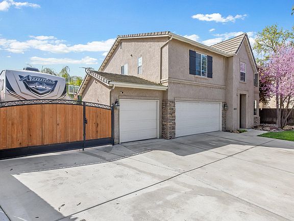 Welcome to this stunning 4-bedroom, 2.5-bath home with a pool and RV Parking in the desirable SW Visalia neighborhood! Boasting over 2600 square feet of living space, this property offers a perfect blend of comfort and elegance. The main level features a spacious living room with a cozy fireplace, a dining area, and a family room that flows seamlessly into the open kitchen with granite countertops. Upstairs, you'll find all the bedrooms, including a large master suite with a generous walk-in closet and a luxurious master bathroom complete with a soaking tub and separate shower. Additionally, there is a loft and a convenient laundry room on the second level.