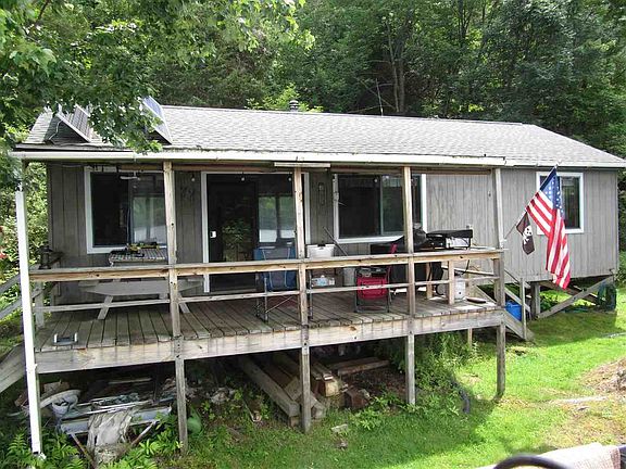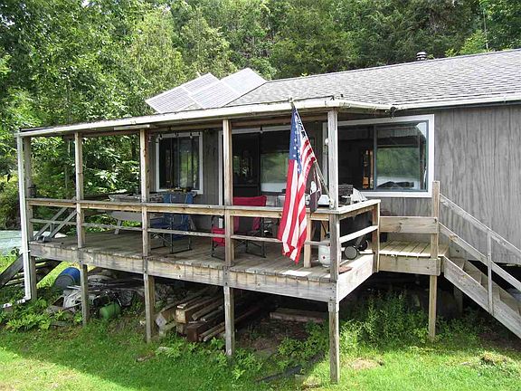 An outdoorsman's dream and off-grid paradise! This two-bedroom one bath cabin sits on 29 wooded acres surrounded by Indian River Lakes Conservancy and is the perfect getaway from your hectic everyday life. Whether you enjoy fishing, boating, swimming, kayaking, hiking, or hunting, this is the perfect retreat for you. The covered attached deck, open lakefront deck, and elevated observation seating offer excellent views of beautiful Butterfield Lake. The cabin features endless double pane windows for a nearly 360 view and is totally off-grid and self-sufficient featuring 600 watts of solar panels on the roof (new in 2014) and four batteries (new in 2021) featuring nearly 1000 amp hours of storage to provide ample power to last all day and into the night. A cozy wood-burning stove supplies plenty of heat in the fall and the propane tankless hot water heater provides unlimited hot water for both the indoor and outdoor showers. Pack your bag and move right in! This cabin comes completely furnished with all dishes, pots, pans, silverware, cookware, towels, and linens as well as a kayak, canoe, and 16ft aluminum boat with 25 horse motor to get you there and back.