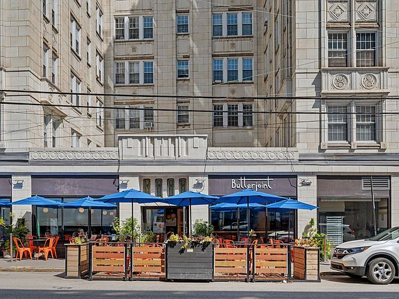 - Exterior features: Bicycle storage, FOB building entry, Heating: Gas, North facing, Parking Available, Sewage included in rent, Utilities fee required, Water/Trash, coffee shop connected to building, garbage room, restaurant/bar connected to building, smoke alarm/CO2 detector