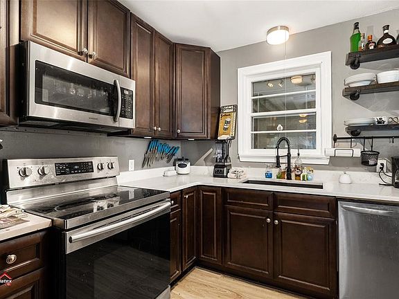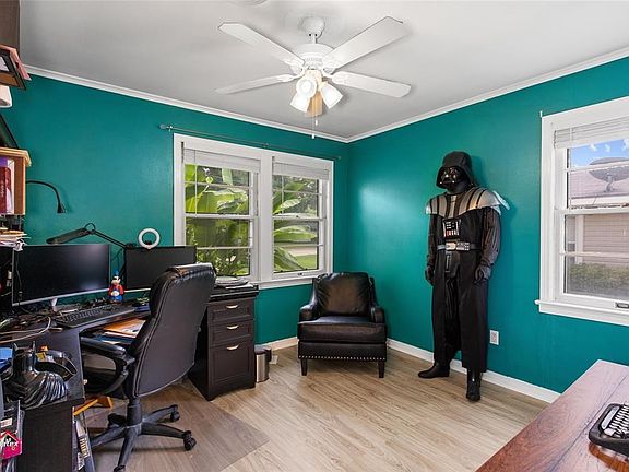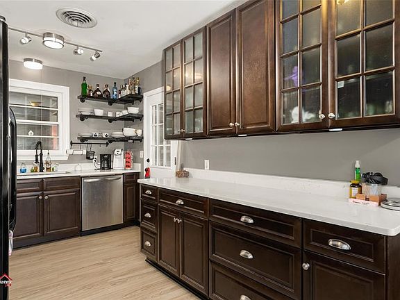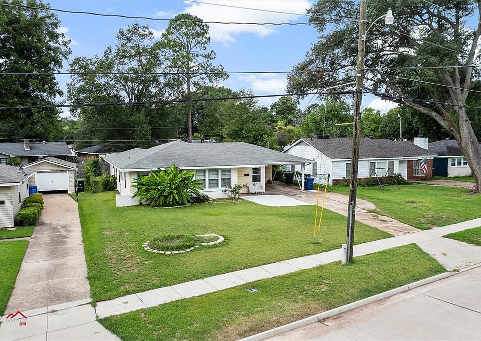 Two living spaces, living room and den with wood burning fireplace and built-ins. The spacious master has twin closets and walks out to screened sun room. Fabulous covered brick patio in the back yard, plus two additional structures. A larger building is perfect for an office or man cave, with electricity and AC. Extra parking alongside covered carport. Complete kitchen remodel with quartz countertops in last 2 years. HVAC outside system was replaced in August of 2021. Laminate, carpet and parquet flooring throughout. Conveniently located to LSUS, Shopping and Restaurants. No flood zone.