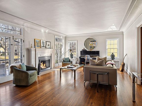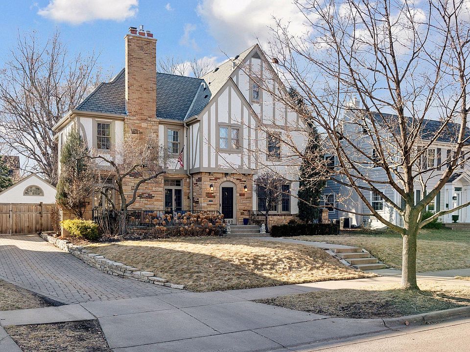 Classic Tudor style home on one of the prettiest streets in the Historic Edina Country Club District. Terrific floor plan includes a main level family room with a fireplace adjacent to the center island kitchen. The original architectural details are intact. Hardwood floors throughout, including the lower-level family room. Newer spacious kitchen with informal dining. Traditional formal living room with a fireplace and a separate formal dining room, plus a main floor library. The second level includes four bedrooms, with a large primary suite featuring double closets and a private bath. The fully renovated 3rd floor has 2 more large bedrooms & a full bath + storage. The lower level has a large family room with a fireplace and loads of storage space.