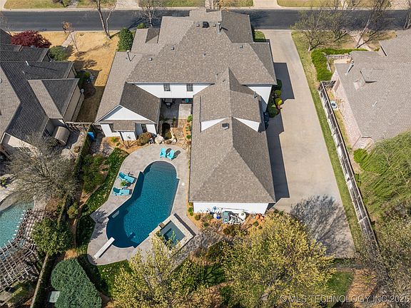 Luxury Gated Home in Jenks Southeast – Recently Remodeled. This stunning one-owner luxury home, located in the sought-after Jenks Southeast school district, offers an exceptional blend of elegance and modern updates. Built by Brumble Homes in 2006 and extensively remodeled by Michael Dankbar, this 4-bedroom, 3.5-bath home features high-end finishes throughout. Inside, the thoughtfully redesigned kitchen boasts Wolf and GE Monogram appliances, custom Jay Rambo cabinetry, a banquette seating area with storage, and a coffee bar. The spacious primary suite offers two closets, a fireplace, and private patio access, while the fully renovated primary bath features a free-standing tub, enlarged shower, floating vanity, and additional storage. The home also includes a designated office, an upstairs game room, and both formal and informal dining areas. Additional features include: Updated Powder Bath & Laundry/Mudroom conveniently located off the 3-car garage, Garage Innovations Custom Garage with built-in cabinetry, epoxy flooring, and wall storage, Heated Pool & Spa (added in 2007) with an outdoor island, built-in gas grill, and storage, Spacious Driveway with Sport Court, Over 550 Sq. Ft. of Walk-Out Attic Storage, All Bedrooms with Walk-In Closets, New Class 4 Shingle Roof (2024)