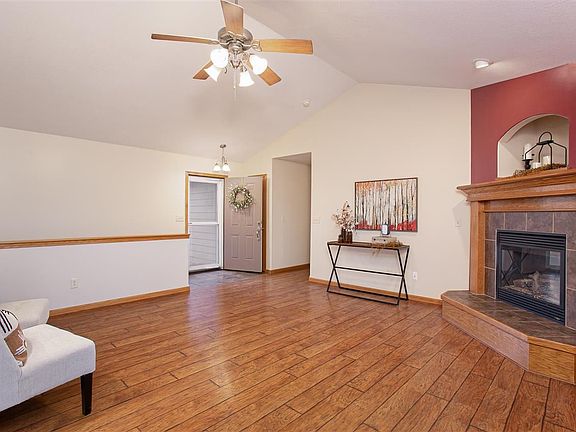 Wonderful home in the highly desirable Eagle Landing subdivision that is ready for you! Upon arriving, take notice the home sits on a corner lot and cul-de-sac within view of one of the neighborhood lakes. As you step inside the living room, you are greeted with lots of natural light with windows overlooking the backyard and the lake. The living room has wood scraped laminate flooring, vaulted ceiling and gas fireplace with blower. The kitchen/dining area has plenty of counter top space for meal prep and cabinets! This home has two laundry options, one in the kitchen behind doors or downstairs. If you'd rather have your laundry downstairs, the kitchen space could be used as a second pantry. Down the hallway you'll find a bathroom with new flooring along with the bedrooms. One bedroom could easily be used as an office with built-in shelves, vaulted ceiling and wood laminate flooring. The master bedroom's en-suite has double sinks, soaker tub, separate shower, and updated flooring. Downstairs is a large family room with view out windows, wet bar, and two additional bedrooms, bathroom and the other laundry room option. Recent updates include new carpet and fresh paint. The exterior of the home has been painted in the last 3 years, deck updated in 2018. Water purifier/reverse osmosis and water softener stays with the home. Located close to the neighborhood elementary school and quick access to highway is definitely a plus. No specials. Don't delay, schedule your showing today! This one won't last long!