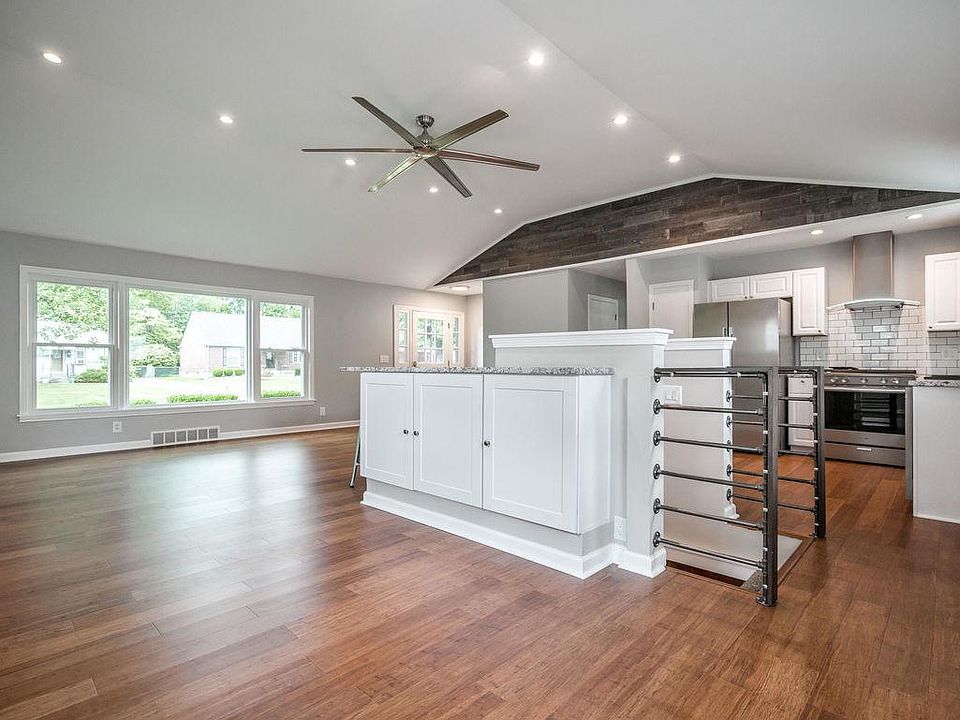 WOW! Stunning remodel in highly sought after Beechwood Village in St. Mathews! Brick Ranch, modern, stylish, completely opened up, walls removed between living, dining and kitchen to offer huge open concept! In the center of the room is a large granite island, stainless steel drawers, white cabinetry, stainless appliances, smart gas range, subway tile, beautiful vaulted ceiling with recessed lighting, repurposed wood accent walls, huge stainless ceiling fan all come together with gorgeous wood plank flooring throughout! Down the hall is a beautiful bathroom, white tile, state of the art bath and shower fixtures, three bedrooms, half bath with repurposed wood wall accent! Incredible back bedroom with a glass doors that open to a huge deck, and a view of one of the largest back yards in neighborhood!Finished basement is a great entertainment space, open, recessed lighting, two bars, loads of storage, laundry room with white cabinetry and new stainless sink.Brand new roof installed July 2020, updated electric. Full wood horizontal privacy fence!Two car detached garage. Neighborhood park, jogging tail, walking distance to everything! Shopping, Banks, Restaurants! Schedule your private showing today!