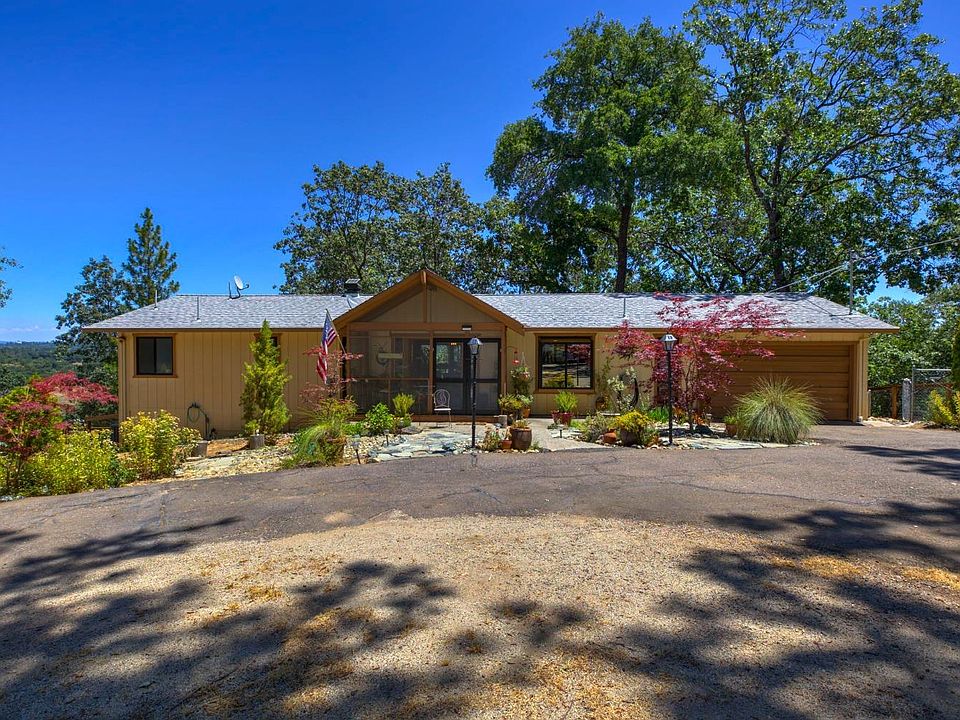 CHARMING home on 1.25 AC w/Limitless Opportunities! Upon entering, you are greeted w/expansive PICTURE WINDOWS to SOAK UP NATURE & all its beauty!Dramatic step-down Family Rm with Wood Fireplace & Cedar planked Vaulted Ceiling.Recently remodel bathroom with porcelain tile floor and a soaking tub. Step outside the primary bedroom for coffee on the private deck. Beautiful Chefs Kitchen, with a Deck right out the back for outdoor Entertaining/Relaxing and a 10x50 Raised Bocce Court with DG surface and safety railing, fun for those summer nights.This home has a 3-Car Detached Garage/SHOP, Fenced property w/security gate, with low maintenance landscape. So many more features, you'll have to come and see for yourself!