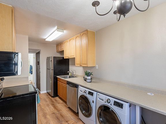 Welcome to this charming 1-bedroom ground level condo in desirable Peckham Gardens. It's move-in ready! Fresh interior paint and new flooring throughout highlight a well-designed floorplan that maximizes comfort and functionality. Situated on the ground level, this home features a private patio, perfect for morning coffee or relaxing evenings. Enjoy the convenience of a washer and dryer included in the unit, along with covered parking just steps away. HOA dues include water and garbage, adding to the ease of low-maintenance living. Residents also enjoy access to a community swimming pool along with a newly constructed tennis and pickleball court, offering an active and social lifestyle in a well-maintained community! Wonderful location too! Find great shopping and restaurants nearby and just minutes to the Reno Tahoe International airport.