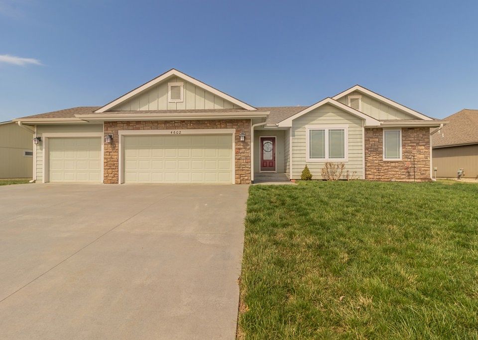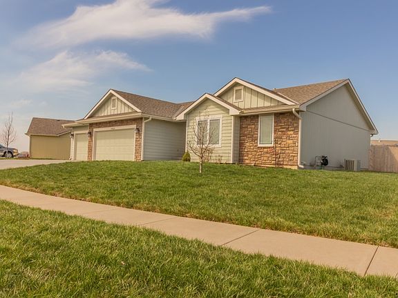 Desirable Nelson?s Ridge Subdivision, Ranch Style home, with an abundance of amenities, 5 conforming bedrooms, 3 full baths, & 3 car garage. The private master bath with jetted tub, ceramic tile shower, and spacious walk-in closet are sure to check several boxes off your list. Add on the fully stocked kitchen with stainless steel appliances, granite countertops, & pantry, along with the main level open floor plan with vaulted ceilings and your search is over! This home also features a generous 25?X19? Family Room with Surround Sound hookups already installed and the 70? flat screen TV is mounted/included for your enjoyment. Vivint Security System and additional, mounted 55? Living Room TV also remain! Lots of new interior painting, recently deep cleaned, & carpets professionally steam cleaned, mean this home is in true move-in-ready condition. Enjoy your summer barbecues with friends and family on the welcoming deck with wood privacy fenced yard. Don?t miss out on this one! To schedule your viewing please call or text Steven Colandrea at 785-477-5893