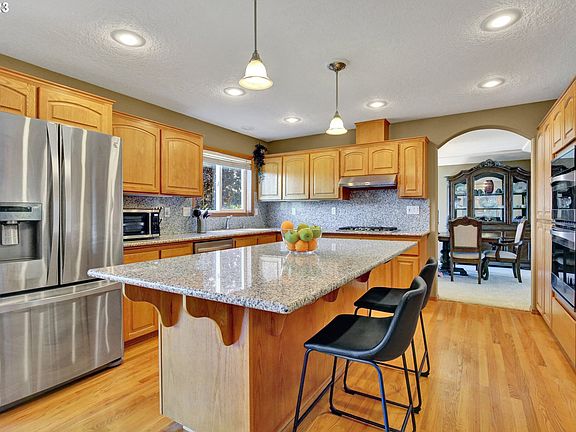 This is the one you've been waiting for! A gorgeous NW Contemporary on .23 acres with a view of Mt. Hood, a 3 car garage plus RV/boat parking! The grand two story entrance with a curved staircase leads into the formal living/dining room. Archways lead into the open kitchen/family room. This cook's kitchen has a huge island with an eating bar, granite countertops, stainless steel appliances, a gas cooktop, a convection/microwave and second oven; great for entaining or family gatherings. The informal dining area has a slider to the huge two-level back deck. The family room is enormous and has a high ceiling and a gas fireplace. Outside the view is amazing; Mt. Hood and pastoral farm views. There is a garden, an indoor/outdoor dog kennel, a shed, plus the backyard is fully fenced. There is no HOA or monthly fee. The laundry room has a sink, folding counter, built-in cabinets and a hanging rod. It doubles as a mud room being right off the three car oversized garage. The garage has an outside door to the RV/boat parking as well as an amazing upper level storage area. Back inside there's the guest bath and the 4th bedroom (needs a closet) or office. Upstairs the primary suite will impress with a coved ceiling, ceiling fan, and a spa-like primary bath. It has double sinks, a jetted tub, a separate shower, and a huge walk in closet. The hall bath has a tub/shower combo and the two additional upstairs bedrooms are a good size; each with walk-in closets. Check out the attached amenities and upgrades list including newer air conditioner and storage shed. Brand new high end carpet, plus new flooring in the upstairs baths and laundry room. Come see this beautiful Troutdale home today!