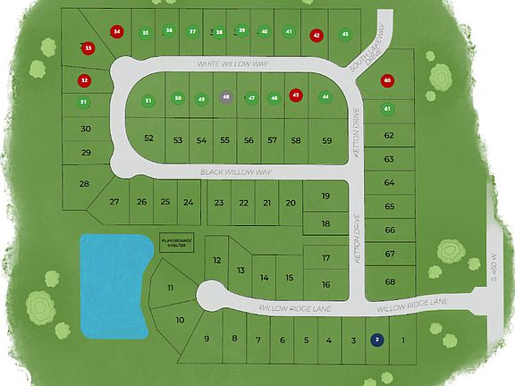 Welcome home to the Jefferson, a floorplan by Silverthorne Homes with three bedrooms and two full bathrooms. Stepping into the home off the front porch, you will notice the first two bedrooms and a full bathroom. Each bedroom comes with its own walk-in closet so everyone will have enough room for their storage needs. As you move farther back from the home, take note of the open concept living area that gives you plenty of room for entertaining guests or hosting a party. You can stay warm all winter long in the spacious great room with fireplace. Enjoy a meal with your family in the nook that is located right off the kitchen. Barbeque during the summer on your large rear covered patio. Your beautiful kitchen includes a gorgeous kitchen island to ensure you have plenty of counterspace. The gourmet kitchen is every chef's dream with a double microwave/oven. Strategically placed away from the other bedrooms, the primary bedroom can be found in the back corner. Discover the hidden gem of New Palestine, IN with Silverthorne Homes! With limited homesites, Willow Ridge will be a chance to create a community.