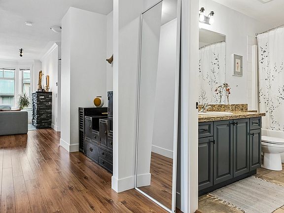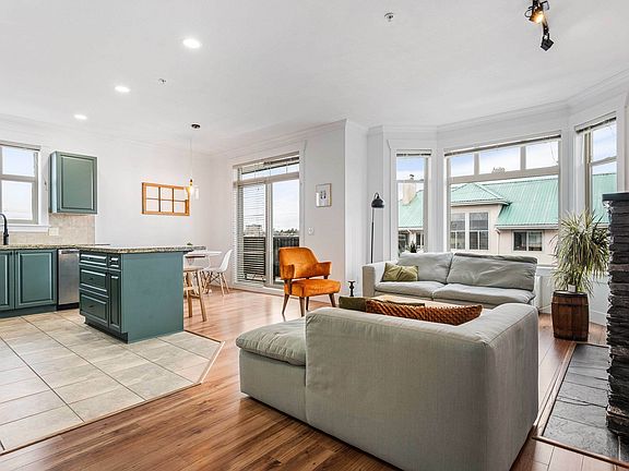 Welcome to The Charleston! This beautifully updated 1200 sq ft+ CORNER UNIT features 3 BDRMS and 2 FULL baths! Tons of windows making this main living area bright and airy. Open concept kitchen with large island, granite countertops and professionally painted cabinets making this now elevated kitchen feel warm and inviting. Living room has a cozy fireplace & access to the large wrap around patio. This home also has AIR CONDITIONING, refreshed cabinets in the bathrooms, in suite laundry, lots of storage & 2 parking stalls! Walking distance to amazing restaurants, breweries, and great shopping in the trendy DISTRICT 1881!