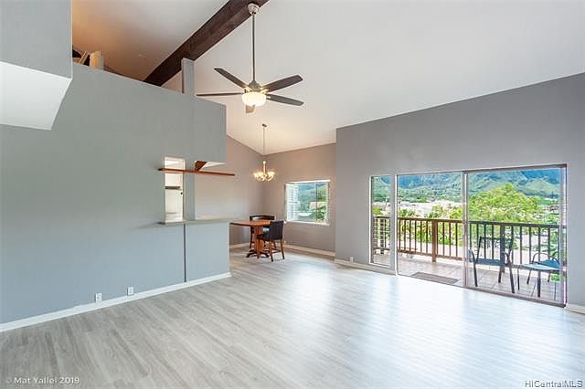 Gorgeous 3 bedroom 2 bath unit in the highly desirable Puu Alii complex in heart of Kaneohe. Over $60,000 worth of recent upgrades including electric box change out, 36k BTU Spit AC, new flooring, new 50 Gallon Smart Electric Water Heater, new kitchen cabinets, appliances, countertops, new custom lighting, new master shower, and new bathroom vanity and tub in upstairs bathroom. One car garage with shelves for storage built in on walls and above garage door, working table, and peg board for holding tools. Move in ready condition, with the modern touches that makes this feel like home. Nice loft space that can be used as an office, toy room, etc. Relax on your porch and enjoy the majestic views of the Ko'oalu Mountains with a peak at the Kaneohe Bay. Amazing amenities including: walking paths, access to 3 pools, BBQ area, security guard 24/7, two tennis courts, and plenty off green space for recreation and relaxation. Walking distance to Windward Mall, grocery store, Walgreens, Longs Drug, and many other shops and restaurants. Short drive to Kaneohe Marine Corps Base Hawaii, Kaneohe Bay, beaches, golf courses, parks, and schools. Easy access to H-3, Like-Like, and the Pali for easy commute to Leeward side of the Island.