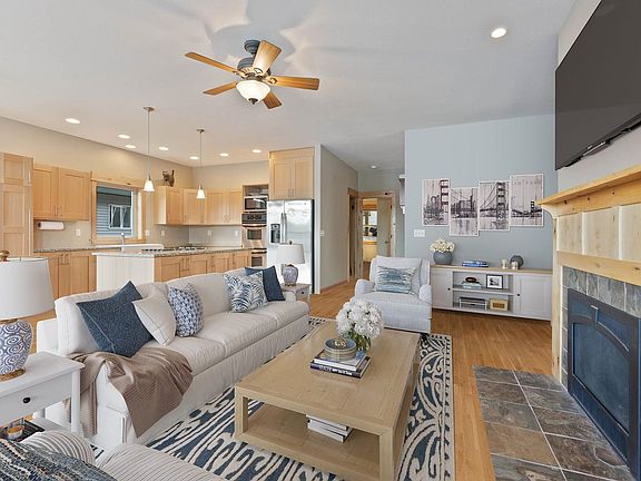 - Cathedral Ceiling(s), Natural Woodwork, Vinyl, Pantry, Kitchen Island, Hard Surface Counters