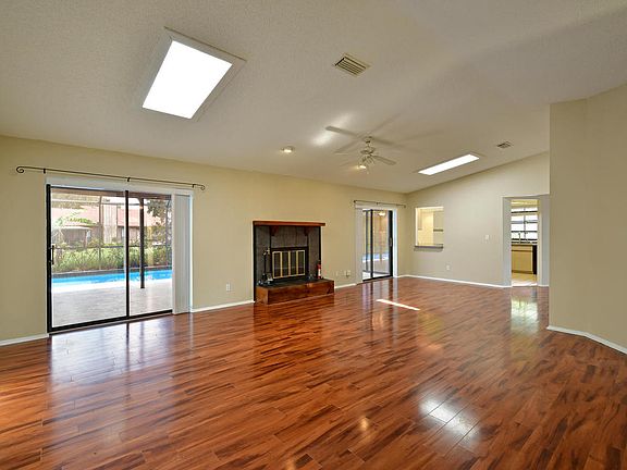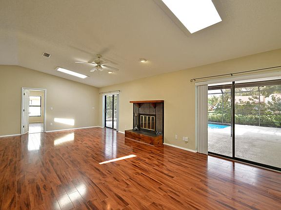 You can make your dreams come true in this lovely 3 BR, 2 BA Westfield Woods POOL home situated on a cul-de-sac. The interior offers a split plan welcoming you into a warm and inviting 1800 sf of living area with a wood burning fireplace and two sets of sliding glass doors that lead to the caged pool and spa. Features include skylights, vaulted ceilings, walk-in closets, freshly painted interior and exterior, 2018 pool pumps, 2013 guest bath remodel, 2012 sprinkler system, 2013 AC, 2002 roof, new pool pump and a private backyard. You'll love the close proximity to all your shopping, dining and medical needs. Leisurely stroll to GT Bray Park where you can take your dog for a romp in the dog park about a mile away or arrive at Bradenton's beautiful beaches less than 6 miles away. Non deed restricted, no HOA fees and not in a flood zone.