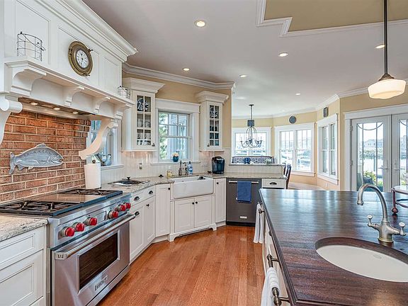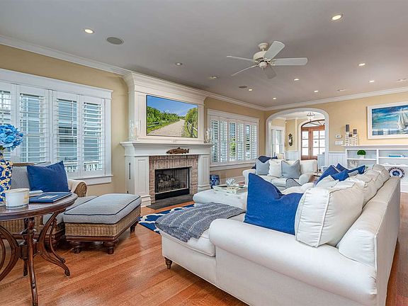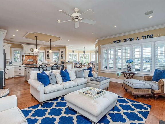 As soon as you enter thru the custom wood door of this distinctive Bayfront home you know you have entered a home that was designed and constructed as someone's personal Bayfront residence. Designed by Paul Kiss of Oliveri, Shusky and Kiss and perfectly executed by DL Miner Construction the quality and attention to detail is found in every space, floor and room of the home both inside and out. The sensational bay views are appreciated immediately as you enter through the open foyer and arched entry way into the great room. Well thought out placement of windows and doors brings the bay right into the home. The entire bayside of the home opens to the bay and covered porch, from the chef's kitchen, to the cozy bayside dining room, and inviting living room. Applied moldings, specialty trim around doors, windows and flooring, custom cabinetry and bookcases, plantation shutters, striking custom mantles and ceiling treatments along with quarter- sawn oak flooring are consistently seen throughout the home. The kitchen is every chef's dream offering high-end appliances, large counter space plus a large center island featuring a second sink, wine/beverage refrigerator and lots of storage. Rich stone tops, farm sink, top of the line fixtures and lighting, specialty brick and subway tile backsplash compliment the custom cabinetry that extends to the fronts of appliances. All this with the convenience of the covered bayside porch and dining area plus views of the waterway and beautifully landscaped yard enjoyed while preparing the family meal. The first of five ensuite bedrooms lives on the first floor along with an ample sized utility room with direct access to your oversized garage and one of two outside showers. The utility room has been updated with new appliances, full size refrigerator/freezer, quartz counter tops, stone flooring, tons of storage and lots of creative built ins for your bay and beach toys/towels. Powder rooms service both the first and second floors. The second floor is where the fun continues! Designed with entertaining in mind the spacious bayside family room is ready to go with two entertaining bars one with an icemaker, dishwasher and beverage refrigerator and a second with a beverage and separate wine fridge, fireplace and pool room; get the party started! Distinguishing this room is a wood paneled dome ceiling sitting area that opens to the bayside deck with long water views down the channel. Coffered ceilings and applied wood moldings finish the entire space. Three guest ensuites finish off the second floor each with stone and tile finishes in the baths, custom cabinetry and door hardware and fittings. Two of the guest suites enjoy their own private outside spaces. The three story custom stair case ends in splendor with the master suite and office on the third floor. Wake up every morning with the views of the basin across Fifth Avenue. In the evening escape to your private deck and enjoy the sunsets. The huge bath has ample use of tile and stone, custom cabinetry, a soaking tub with a view, glass enclosed shower, a second laundry area, water closet, walk in his and her closets and private outside shower! If you must work your bayside office awaits! Start your day on the bayside deck with a cup of coffee, enjoy the view then head to work - three feet away! The exterior of the home is wrapped with mature stunning irrigated landscaping. Stone foundation and chimney chase compliment the low maintenance exterior. The grass yards are complimented with blue stone paver stones. The first floor blue stone porch leads to an Ipe deck wrapping the south side of the house which meets the covered bayside porch. If you love boating, kayaking, paddling, fishing or just the water in general you will appreciate the dock and bayside rear yard. Easy boating access - drop the boat and go any time.