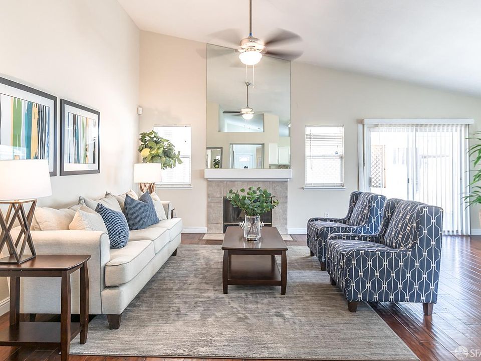 Beautiful home in the highly desirable Laurel Crest neighborhood. Vaulted ceilings. Formal living room and kitchen/family room combo which is perfect for entertaining! Rich manufactured hardwood floors in family room and hallways. Office with built-in desk and shelving. Convenient laundry room with custom shelving, cabinets, designer tile work. Ample storage, backyard sheds for storage. Two car garage. This home is close to Downtown Oakley eateries, shopping, EBart, freeways, schools and parks. Don't miss this one!