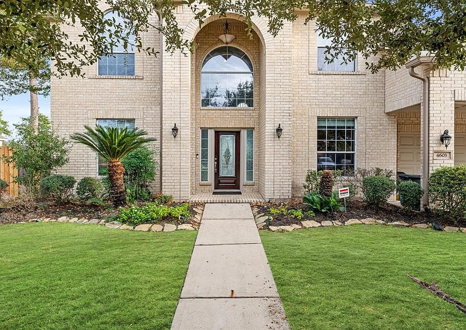 ON THE LAKE! Walk right through your iron gate onto the walking path of the lake with fountain. Tranquil backyard boasts panoramic views of the water. FIVE BEDROOMS! Dramatic two story family room with floor to ceiling windows. Study with French doors off two story entry. Extensive crown molding throughout! 18" Tile floors throughout study, formal dining, family room, kitchen and breakfast. Island kitchen features Cherry cabinetry with gas front accent cabinets and custom pull out cabinet for trash can. Stainless steel appliances with gas cooktop! Expansive granite countertops w/wrap around breakfast bar. Spacious master retreat enjoys lake views, HUGE walk-in closet with built-ins, and bath with whirlpool tub and separate shower. Gameroom up with four additional large bedrooms and two full baths. Double pane windows, low maintenance cement siding and brick exterior. Garage with wall of built-in cabinets for storage. HUGE walk in attic! Flagstone patio and beautifully landscaped!