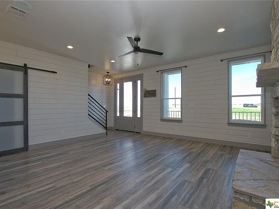 Country home in Navarro ISD with a Master Bedroom up with private porch AND a Master down! Vintage double doors, tile, soaker tub, and walk-in shower. Gourmet Kitchen open to Living Room with rock fireplace and built-in bench. 3 bedrooms and 3 1/2 bathrooms with lot's of flexible, beautiful space, including upstairs media room with built-in cabinets and mini fridge. Attached 2 car garage AND detached one car garage/workshop with covered porch to enjoy southern views! Landscaped. Concrete driveway double width for parking. 15 minutes from San Marcos, Geronimo, and New Braunfels.
