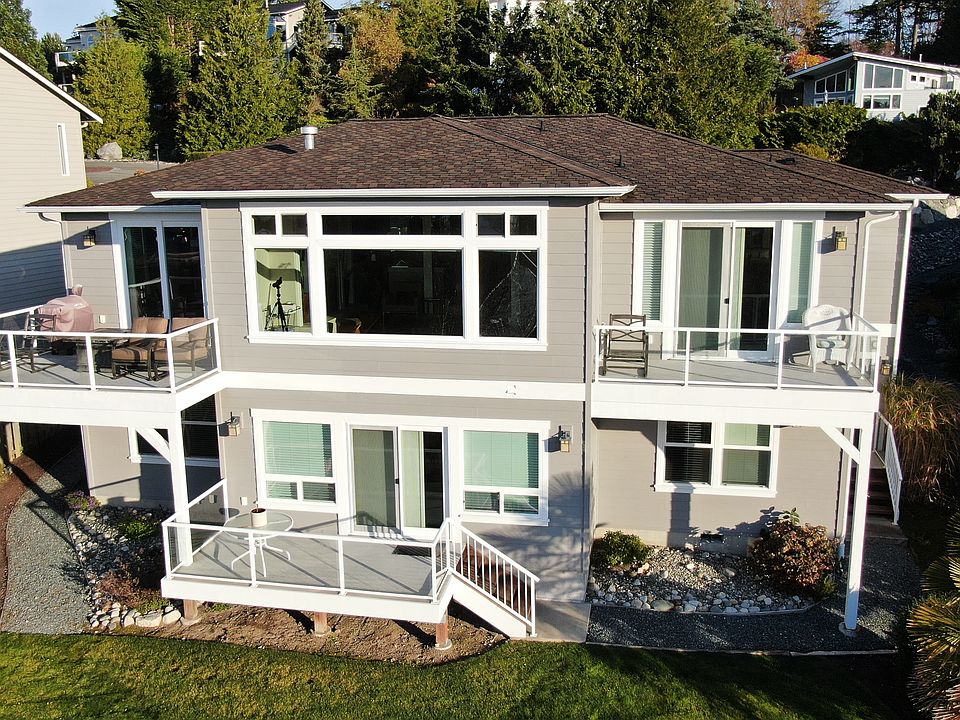 Amazing views of, Burrow Bay & beyond to Islands and the Olympic Mountains in this Strandberg Built home. Cooks kitchen boasts, five burner stove, second oven, quality cabinets & appliances, walk in pantry. Main floor Master has soaking tub, large shower, walk in closet & its own deck. Featuring: handicap accessible up & down, central vac with garage outlet, kitchenette in basement, UV and sound dampening windows, Skyline amenities: Cabana, Beach club, Tennis courts and beaches for $144 per yr