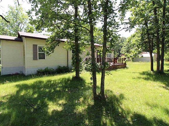 2.06 acres mol surrounding mobile home with addition. 2 bedroom, 1 bath with 2nd toilet closet, open living, dining and kitchen with knotty pine ceiling. French doors to deck from dining room, pellet stove in living room. Updated kitchen cabinets. Out building with partial concrete floor and dirt floor plus additional sheds. Seller states well is under the house. This property is being sold in it's present as is condition.