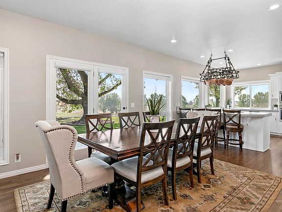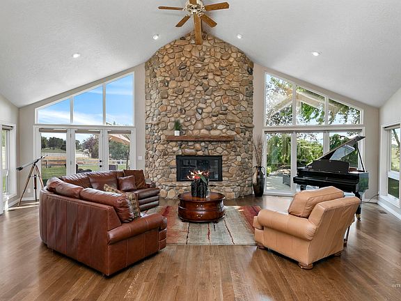 An exceptional 10 Acres with 360 views ideally located between Star and Eagle. Beautiful, single level home offers privacy and a multitude of amenities. Stunning endless views in all directions compliment the updated features. An inviting and warm interior complete with expansive oak flooring, a spacious open floor plan, and custom finishes. Enjoy the floor to ceiling river rock fireplace. The bright kitchen features a large pantry and wall oven unit. The owner’s suite has separate vanities, a deep soaking tub, and an oversized tile shower. Embrace the beauty of the Star foothills in the large backyard area with multiple entertaining areas, a large water feature, and the room to live the good life. This property features a 40x48 barn, four horse stalls, riding area, and a fully irrigated fenced pasture. Separate 40x22 shop/RV garage with heated floors.