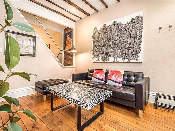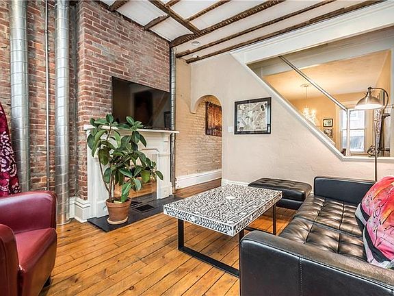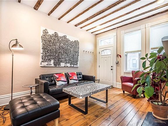 This classic, restored, Row House features original wide-plank pine flooring; exposed brick and duct-work; beamed ceilings in the living room and master; spacious rooms; 4 decorative fireplaces; and a fenced-in courtyard! The bright and sunny kitchen delights with Carrara marble counter-tops; tile flooring; tile back splash; and stainless steel stove and refrigerator. Two large bedrooms and a full bath are located on the second floor. The full bath impresses with a claw foot soaking tub; beautiful brass fixtures; and 2 marble and wrought iron custom vanities. The considerable master offers a large walk-in closet; plenty of space; and stylish architectural details and lightfixtures. This stylish beauty is TURN-KEY and is located in the heart of Lawrenceville, close to Butler St and main attractions!