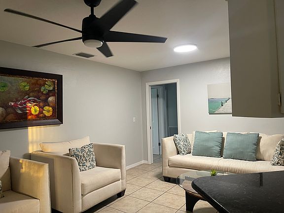 Nice 4-bedroom home is now available. It is a fully furnished 1860 sq ft home that comfortably sleeps 8 people and has a large fenced in yard. This is in a great neighborhood and within walking distance to downtown Cape Coral restaurants and events. This home has two living rooms, 2 master bedrooms one with a king bed and one with a queen bed, both with walk-in closets; ; The 2 other bedrooms have one with a king and one with two queens. There are 3 full bathrooms. The outdoor lanai has furniture for the family to gather and is combined with a stainless-steel grill to cook some delicious dinners. Propane tank is renter responsibility and will need to be filled at end of rental. The kitchen is fully equipped with utensils and all cooking appliances needed to make your favorite meal. If you would like to wake up to a nice cup of joe, don't worry, we have a coffee machine to make your favorite blend of coffee. Kitchen with all appliances (including blender, coffee maker, toaster, etc.). Washer and dryer are included. Things to remember: No smoking allowed Tenant covers electric, water, phone, cable and internet. First, Last, security deposit required at signing. Pets are negotiable and will require $250 nonrefundable deposit for each pet Garage is not available Yearly renters. Renter will be responsible for phone, cable and internet, water and electric bills and the cleaning of house. Will need to carry renters insurance.