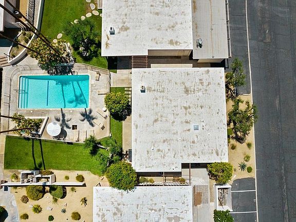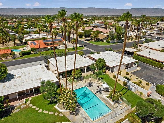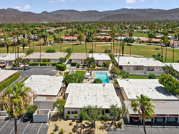 Exceptional Fairview Cottages opportunity now available! Sitting on the historically designated Shadow Mountain Golf Club course, Fairview Cottages and its storied history dates back to the midcentury architectural influence and design of accredited architect Richard Dorman, FAIA. This rare, standalone condo preserves vintage charm with selective modern touches. Original features retained include polished and pristine Terrazzo and concrete floors, vintage tile, period cabinetry with updated Formica counters to maintain a mid-century vibe and original stately stone fireplace, all adding to the warmth and appeal of this mid-century era home. The primary en suite bedroom with walk in closet, private outdoor patio and remodeled bathroom present a perfect opportunity for secluded relaxation. The orientation of this cottage captures the dramatic views of the nearby San Jacinto mountains through the transparent wall of newly replaced, low-emissivity, tempered glass Milgard windows and monumental sliders. Multiple patios in the condo encourage leisure and relaxation, with the community pool steps away. A private laundry closet with additional storage opportunity is also offered in this condo. Within close proximity to El Paseo and many Coachella Valley amenities with its central location, Fairview Cottages captures the ease and enjoyment of the timeless desert lifestyle.