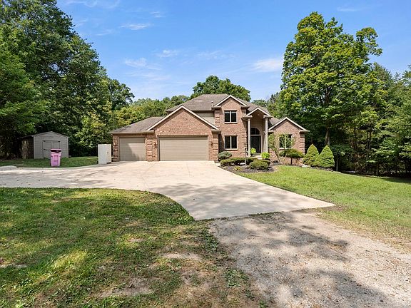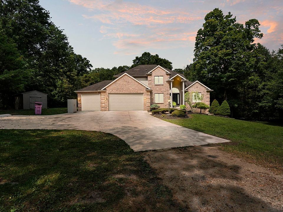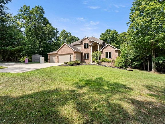 ........Contingent Offer...First Right of Refusal.... Beautiful custom built brick 2 story on 4.5 acres in Roanoke, IN. Cathedral ceilings in the living room with 2 story fireplace overlooking gorgeous wooded views. French doors in the dining room with hard wood flooring. First floor primary with tray ceiling and full bath. Eat in kitchen opens to 4 season room overlooking wrap around concrete patio. 2 bedrooms upstairs with large open loft area, and full bath. Finished basement with pellet burning fireplace insert, bar, and media center. 3 car attached garage and storage shed. Interior has been freshly painted with new carpet throughout. If you are looking for a private oasis, this home is a MUST SEE. Private hunting permitted on property. Title work has been initiated with Fidelity Title.