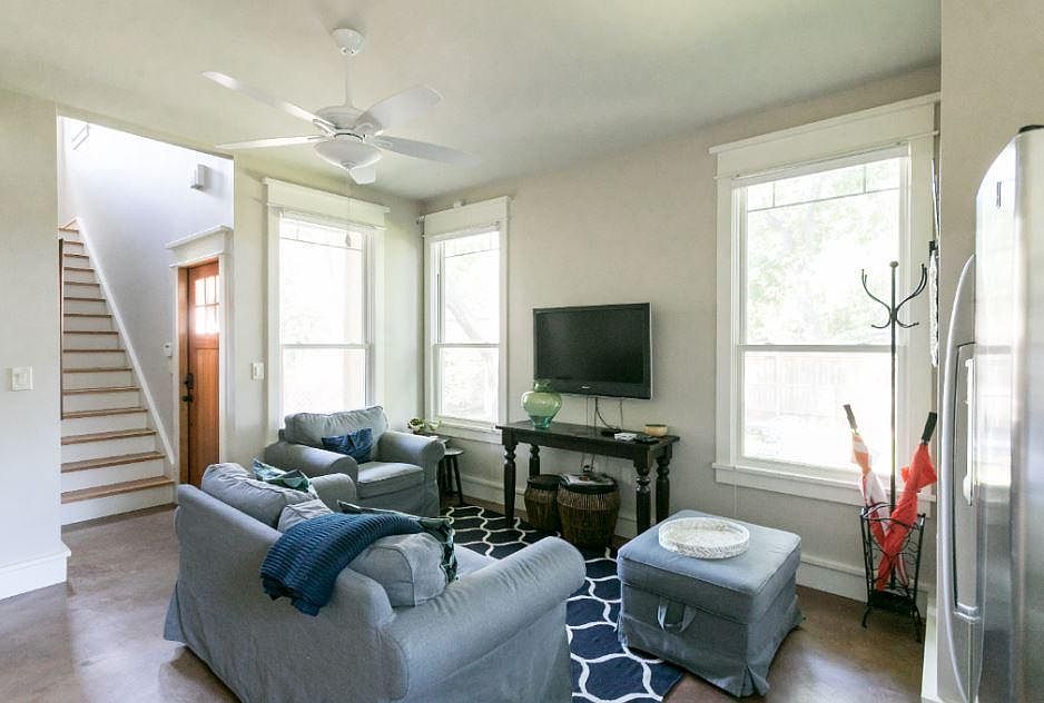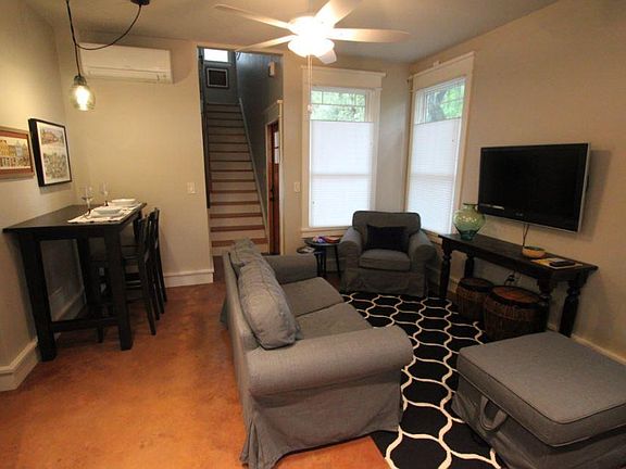 Furnished new garage apartment completed in April 2018. Apartment comes fully furnished as shown on pictures. Apartment is detached from main dwelling and has a separate and private entry. Willing to consider several lease terms options with adjusted rent (minimum 1 month). Apartment has a main bedroom downstairs with king size bed and a full bathroom with shower next to it. Full kitchen with all new appliances on first floor and a small living and dining area. Kitchen comes with refrigerator, dishwasher, microwave, stove with oven, garbage disposal, and all utensils, cookware, coffee maker, etc. Laundry area including washer, and dryer is located on first floor. Upstairs there is a bedroom with two twin beds and additional area large enough for a small office. Additionally, upstairs there is a large living area that could be used as an additional bedroom (has large bed sofa) or large family living area (bring couch from downstairs and enlarge the first-floor dining area). A second full bathroom with tub shower is located upstairs. Apartment has stained concrete floors on 1st level and beautiful oak hardwood floors on stairs and 2nd level. Bedrooms and living areas have mini-split AC units (4 total) and each can be independently controlled for temperature and fan speed via a remote controller. Apartment was built with energy efficiency in mind to minimize energy costs and maximize comfort. Dwelling is enabled with ethernet connections throughout the apartment and with Wifi access points on both floors. Security system is included to monitor doors and windows. Surveillance cameras are located on the outside of the apartment to enhance security. The large yard is fenced, full of trees, and attractively landscaped with shaded area for dining/relaxing. The property in Austin's North Hyde Park neighborhood which is walkable with parks, shopping, and other amenities close by (Quacks Bakery, HEB, Hyde Park Grill, Triangle). Property is near bus route (Duval St) and within walking or biking distance to UT, St David's Hospital, or State offices in North Lamar. Landlord covers internet, water, garbage pickup, and landscape maintenance expenses. Tenant is responsible for electricity, and gas. Pets can be considered with additional security deposit. Smoking is not permitted in the house or premises.