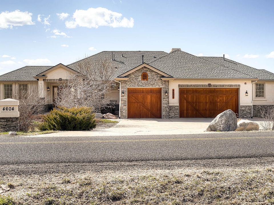 TColorado living at its best. Abounding wildlife in majestic 2.5 acre natural setting with gorgeous mountain views all around. Beautiful 4BR 4 Bath custom built “E-star rated” Ranch with finished walkout lower level. Open floor plan with full stone fireplace, huge study with lots of windows, double french doors & box beamed ceiling, hickory floors throughout main floor, open kitchen with granite counters & maple cabinets- Perfect for entertaining with large bar height counter, master suite with walk-in shower, jetted tub & generous closet space, wrap around covered trex deck with outdoor fireplace, separate laundry room with cabinets & large sink, oversized 3 car garage, large bedrooms, formal dining room and so much more. Great Location in Bell Mountain Ranch.