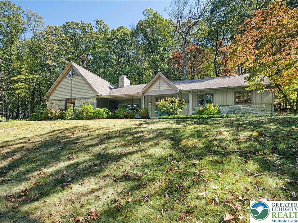 Framed by stately trees and colorful plantings, this charming red cedar ranch is nestled on 4.85 wooded acres in Upper Bucks County. Mid-century built and extensively renovated in 2014, the convenient one level floor plan is enhanced with hardwood floors, exposed wood beams, and a loft area fit for an artist.