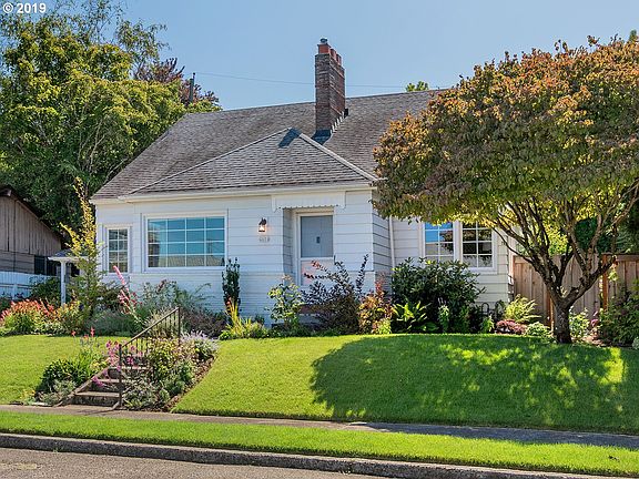 Great floor plan w/generous room sizes, wonderful natural light, corner windows, coved ceil, refin hdwds & very cool original tile bathroom. Updates incl kitchen/upper bath/elec panel/water line/windows/patio/landscaping/sprinkler system. Two good options for mstr bdr, 2 fpl, central a/c, huge bsmt family room, abundant storage. Possible option for ADU in bsmt. Near bus, MAX & shopping. [Home Energy Score = 3. HES Report at https://rpt.greenbuildingregistry.com/hes/OR10063636]