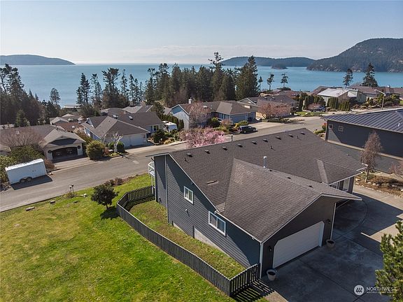This stunning 5 bdrm, 3 bth home is located in the desirable Skyline neighborhood of Anacortes and boasts breathtaking views of the sound and Olympic Mountains. Large windows throughout the home offer natural light and stunning views from every angle. The spacious and open living and dining areas provide plenty of room for entertaining, while the cozy fireplace adds a touch of warmth to the space. The primary suite is a true retreat, featuring a luxurious en-suite bath and great views. The lower level includes a second kitchen, allowing for the potential of a 2 bedroom, 1 bathroom apartment. This makes the home perfect for multigenerational living or rental income. All bdrms are large and house has tremendous storage space throughout.
