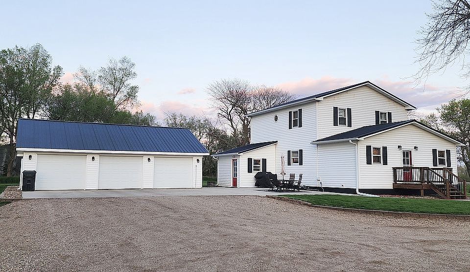 Check out this nice acreage, just 20 minutes from Sioux Falls! Located just west of Chancellor, SD, this 2.5-acre property features a picturesque and nicely updated two-story farmhouse with three bedrooms, two full baths, and 2,595 finished square feet! Outside, you’ll find a large 3-stall heated garage, a 36x30 machine shed, and an 18x24 garden shed/chicken coop—all of which have concrete floors. Come on in and kick off your shoes in the spacious entryway, then unload your bags in the thoughtfully designed pantry. On the main floor, you’ll appreciate the open kitchen/dining room with an adjacent living room and access to the new 12’x20’ deck. A large bathroom, laundry, and plenty of storage on the main level are just some of the other great features in this home. Upstairs, you’ll find the principal bedroom with his and her closets, two family bedrooms, and a full bathroom. Downstairs is a perfect place to hang out in the recently refinished family/living room, and there’s also a bonus room with a closet and window that would make a great office space or potentially a bedroom. New steel roofing on the home and garage, installed in 2022. New entry doors, decks, and several new windows were also installed in 2024. This home has been pre-inspected, and the report will be made available to qualified buyers at their private showing. This well-rounded and spacious property is ready for you and your family to call home! FSBO. Serious Inquiries Only. Open to discussing buyer's agent comp. Nearest City: Chancellor, SD County: Turner School District: Lennox 2023 Taxes: $3,476 Home Type: Single Family Beds: 3 (upper level) Full Baths: 2 (1 Main, 1 upper) Finished Square Feet: 2,595 Finished Area Above Grade: 1,888 total (728 Upper + 1,160 Main) Basement Area: 1,040 (707 Finished) Foundation: Concrete Block Exterior Covering: Vinyl Roof Covering: Steel (installed 2022) Lot Size 2.54 Acres Year Built: ~1920 Estimated Structural Remodel: 2002 (Foundation, Roof, Plumbing, Electrical, HVAC, etc) Central Air HOA Fees: None Water Supply: TM Rural Water Electric: Xcel Energy Sewer: Private Septic Propane Supply: Leased Tank (CHS)