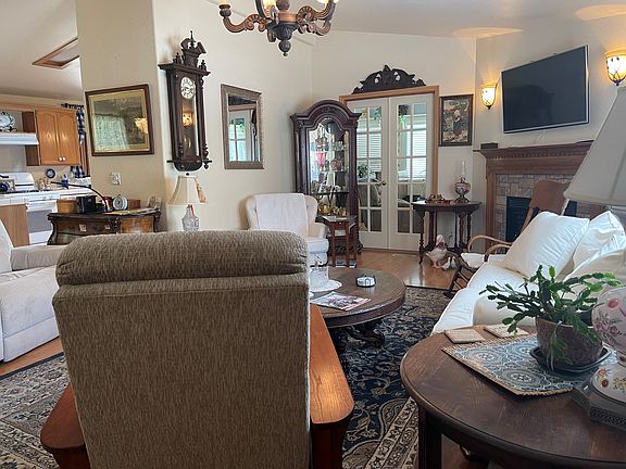 Enjoy breathtaking views and peaceful living in this beautifully maintained 2-bedroom, 2-bath home located in the desirable Oak Creek Community.This bright and sunny home features a spacious open floor plan, including a large kitchen, dining area, and a cozy electric fireplace that adds warmth and charm to a very large living room. An inviting sunroom provides additional living space and natural light. Sunroom square footage is in addition to the home size, sunroom features washer and dryer hookups with a large laundry sink.The primary suite offers a generous closet, while the second bedroom and bath are perfect for guests or a home office. From the front room and deck, take in sweeping hillside views that come alive with wildflowers in the spring. Out back, enjoy serene meadow views perfect for relaxing or entertaining.This lovingly cared-for home combines comfort, beauty, and a sought-after location. Don t miss your chance to own a piece of this tranquil community.