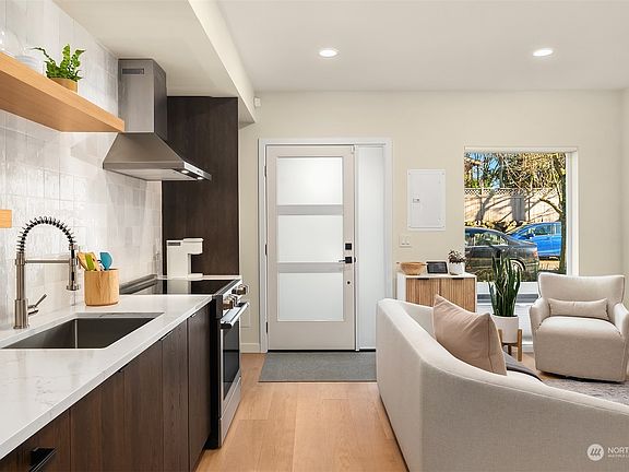 SELLER-FUNDED 30-YR RATE BUY-DOWN - 5.75%! Immaculate 2-bed, 2-bath townhome w/ gorgeous finishes in the heart of Wallingford. Features a stunning steel spiral staircase, high ceilings, & tons of natural light. High-end finishes include wide-plank oak floors, remote blinds, & custom closets. Room-specific mini splits for heating & cooling. Sleek kitchen w/ paneled appliances, tiled accent wall, quartz counters, & appliance garage. Just 1.5 blocks from groceries, restaurants, pubs, cafes, retail, bus routes, & E/V charging. Wallingford Farmers Market, parks, gyms, & more nearby. Walk Score: 98! Pre-inspection & sewer scope available. Offers due Monday, February 3rd.