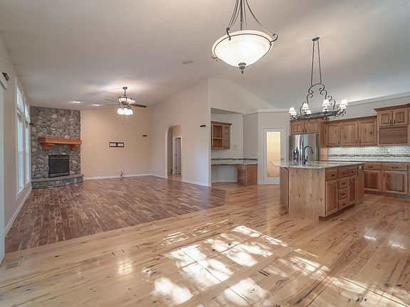 Beautiful property with lush vegetation. Step inside to a 4 bedroom 4 bath home with 5,241 sq ft of living space. Extra large kitchen for entertaining which includes double wall ovens, gas cook top, beautiful bar with two sinks and open living. Generous cabinets complete the kitchen along with a separate pantry. Hardwood floors in both the kitchen and family room. A beautiful rocked fire place along with a lovely wood mantle complement the living area. Step downstairs into the walk-out basement where you will find the ample living space for your family to enjoy. Lovely patio access, separate kitchenette and gas fireplace to appreciate. Extra features of this home include, spacious laundry room with extra storage, cold storage with lots of shelving and deep garage. Delight in the large master suite which includes a spacious walk in close, his and hers sinks, corner jetted tub and separate walk in shower. Step outside into your 6 acres of property where hundreds of mature trees speckle the property. Enjoy an evening on your back patio or covered deck and enjoy the Koi fish pond and the sound of the canal at the North end. Next to the home is a 40 x 60 shop to store all your toys. Automatic sprinkler irrigation and water rights included. This home is an absolute dream.