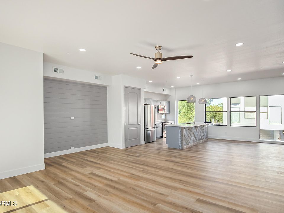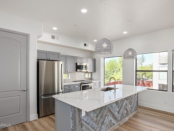 This one is turn-key! Just completed $100K remodel of this townhome located in the gated community of Papago Point. Conveniently located, close to Papago Park, the Botanical Gardens, Phoenix Zoo and Downtown venues, Sky Harbor and much more! Close proximity to the Arcadia and Biltmore, Old Town Scottsdale and spring training. Enter your 2-car garage with new epoxied floor and access to a private rear yard and two storage rooms. Great space for a pet run. In the main living level find a spacious open floor plan. To the balcony, you will find city and mountain views. Natural light, high ceilings, freshly painted interior, LVP and tile flooring, and custom woodworking accents highlight the remodel. New HVAC and newer water heater. Custom chefs kitchen with quartz countertops, new stainless steel appliances, large pantry, and island with breakfast bar, and a main level half bath! The upper level presents a primary suite with bathroom, two guest bedrooms, guest Bath and more mountain views. The upstairs laundry closet washer/dryer conveys! Relax, refresh and unwind poolside in the community heated pool and spa that has a bbq area.