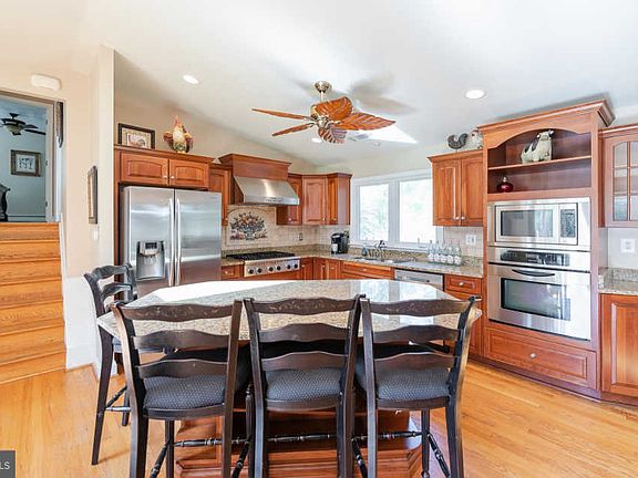 Beautifully upgraded split level home perched on a picturesque lot with open backyard! Renovated open floor plan includes living room w/large bow window, dining area & KIT with sleek granite counters, island, custom cabinets and luxe appliances including Jennair double wall ovens & Thermador cooktop & range! Gorgeous sunroom w/cathedral ceilings & floor to ceiling windows offering 3 vantage points! Owner's suite w/WIC, Optional 2nd master bedroom on entry level for flexibility! Newly installed hot water heater and dishwasher. Radon detection system in place. Welcome home!