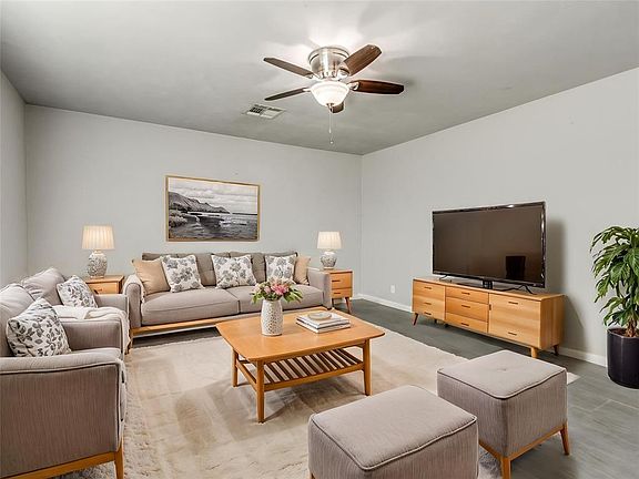 Wow! So much space! This gourmet kitchen has the PERFECT layout for cooking & entertaining. PLUS, it's paired with ample space for a LARGE dining table! In addition to the main living room, this house features a separate sitting-area/living space that provides lots of natural sunlight, perfect for hosting lots of guest! This home has designer-choice ceramic tile throughout the entire home, including updated bathroom countertops, sinks, and showers. This home features ceiling fans in every room, AND tall ceilings with a stunning wooden beam to catch the eye! This home provides lots of natural light from windows in the living room. The master bathroom includes a Bluetooth speaker for a more relaxing shower experience! Hang out on the back deck and enjoy the pergola and firepit. You'll love this neighborhood and its close proximity to restaurants and shopping! This is the perfect place to call home!