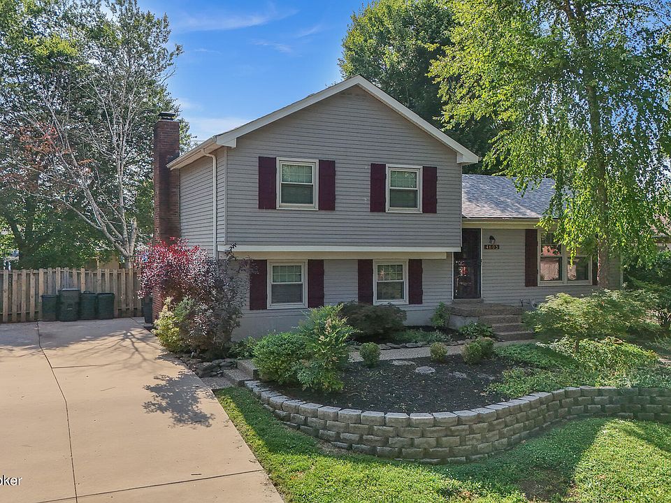 Tucked away on a quiet street in the Nottingham Hills neighborhood, this 3 bedroom, 2 bath quad-level home has a great blend of comfort and space. Scenic landscaping beds, a double-wide driveway, and lush greenery welcome you into your new home. With fresh paint, flooring rejuvenation, and loving design, this home will be ready to shine! The main level begins with a living room and a formal dining room, perfect for entertaining dinner guests. The heart of the home, the kitchen showcases a great cooking triangle layout and loads of cabinets, including a convenient Lazy Susan. You have a stainless fridge and dishwasher, along with the stove and built-in microwave. A wall of windows lines a breakfast area with great space for a dining table, as well as the sink that overlooks your large backyard. In true quad-level fashion, the kitchen is open to the lower level below which offers a huge family room with built-in cabinets & shelves and a fireplace with brick mantle and surround. This level also has a full bathroom with walk-in shower, as well as sliding door access to a walkout patio and fenced-in backyard. Moving to the third level, you have three nice-sized bedrooms and a full bathroom with a tub/shower, set up in Jack and Jill style. Rounding out the interior is a spacious, unfinished basement that provides your laundry area and tons of storage space and organization. Outdoors, you have a fully fenced-in, tree-lined backyard with a patio and convenient shed for storing garden tools and lawn equipment. With a privacy fence and nice level lot, this will be a relaxing place for you to enjoy time outdoors. Located in a serene and peaceful area, you are just minutes away from dining, retail, and the entertainment in J-Town and nearby Stonybrook, Fern Creek, and Hikes Point. Don't miss out on this wonderful opportunity, schedule your tour today!