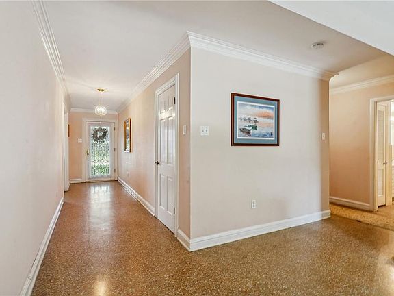 Living areas with crown molding and low-maintenance & durable terrazzo flooring. Tons of storage throughout, Large bedrooms and walk in closets in 2 bedrooms.